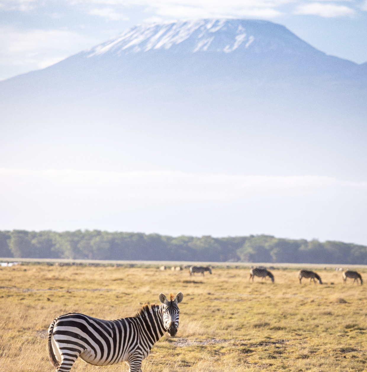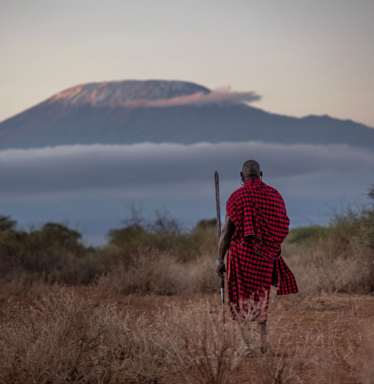 Mount Kilimanjaro rising in the distance.