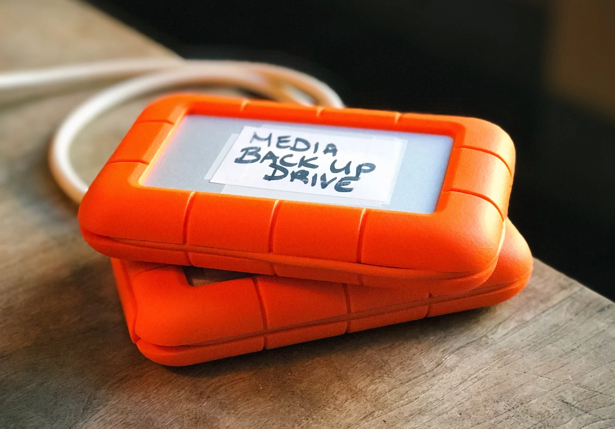 A backup hard drive is a great alternative to using cloud technology when traveling. My favorite choice is the Rugged Thunderbolt drive from LaCie. The thunderbolt connection makes transfers of large files (such as videos and photos) much quicker than a regular USB. Additionally, this drive is made for travelers and is made to take a little bit of a beating. I recommend anyone who takes a lot of video or photos to buy the 2TB. So far, I can only find in orange. I have several, so I keep them organized by labeling each of them.